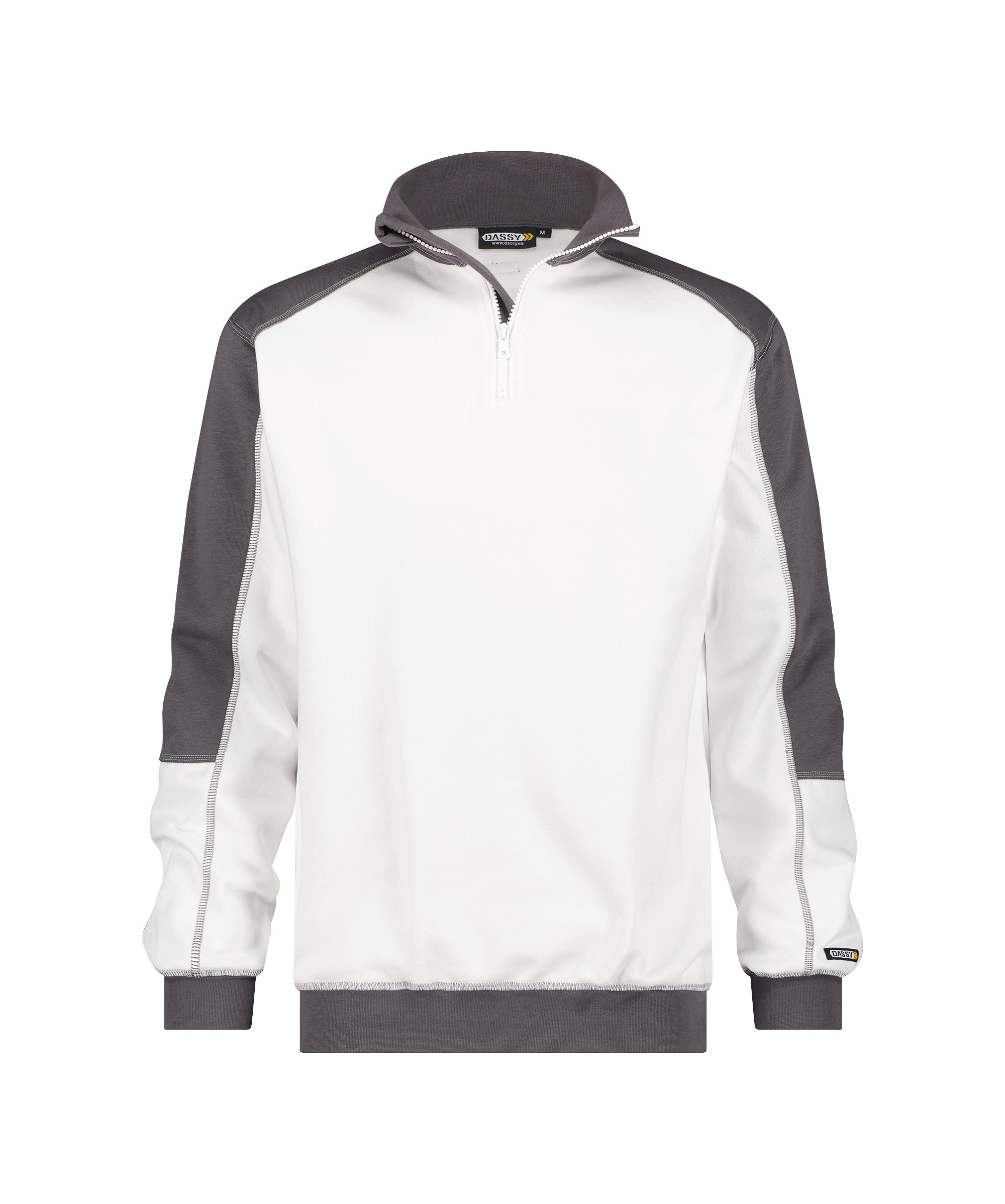 Een stevige werktrui met een opstaande kraag. Rits hem open om deze sweater vlot aan- en uit te trekken en dicht voor extra warmte. Door de beschikbare kleuren wordt dit sweatshirt vaak gedragen door schilders en stukadoors, maar ook in andere sectoren gaan vakmannen met de DASSY® Basiel uit de DASSY® Classic-collectie aan de slag!