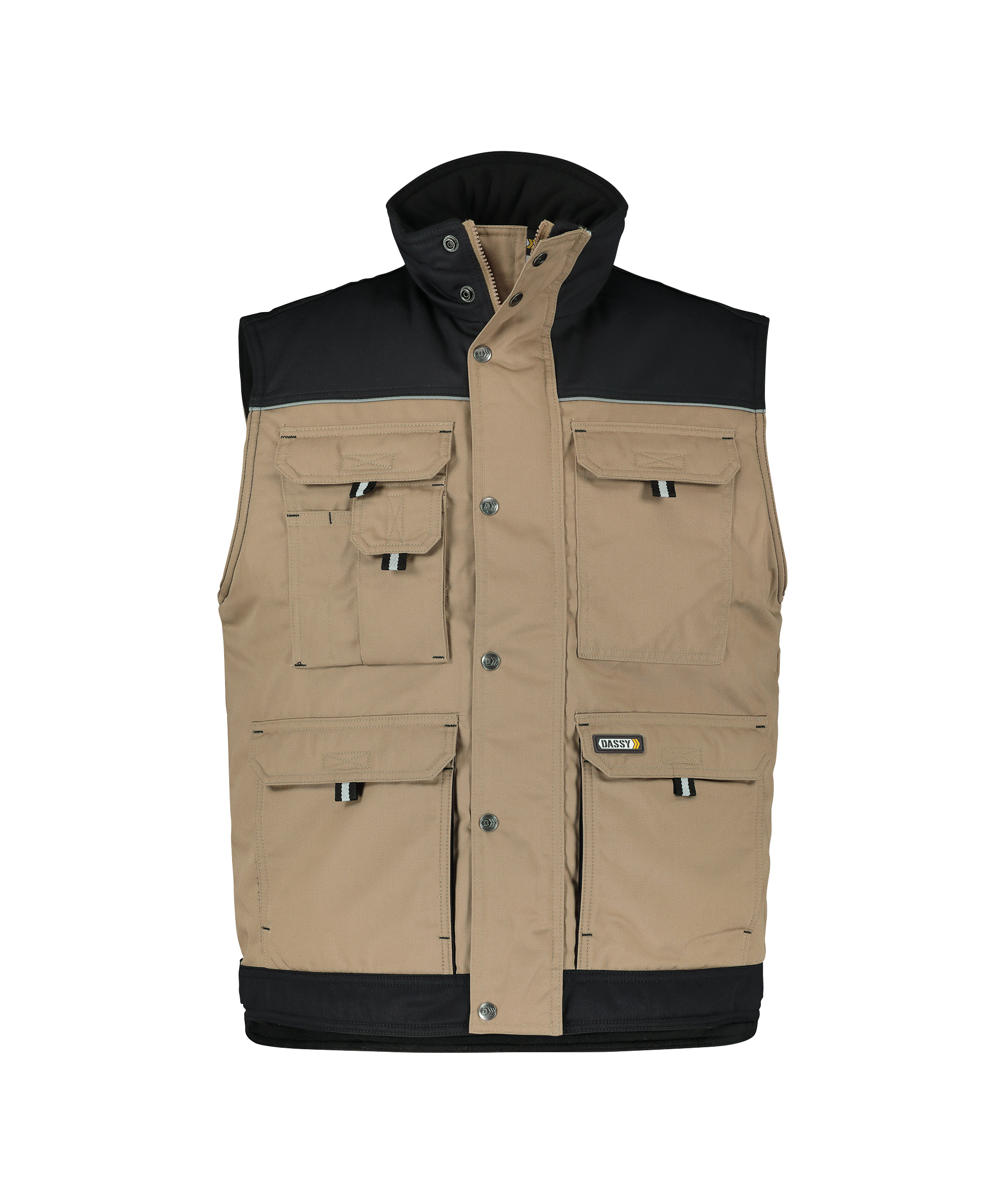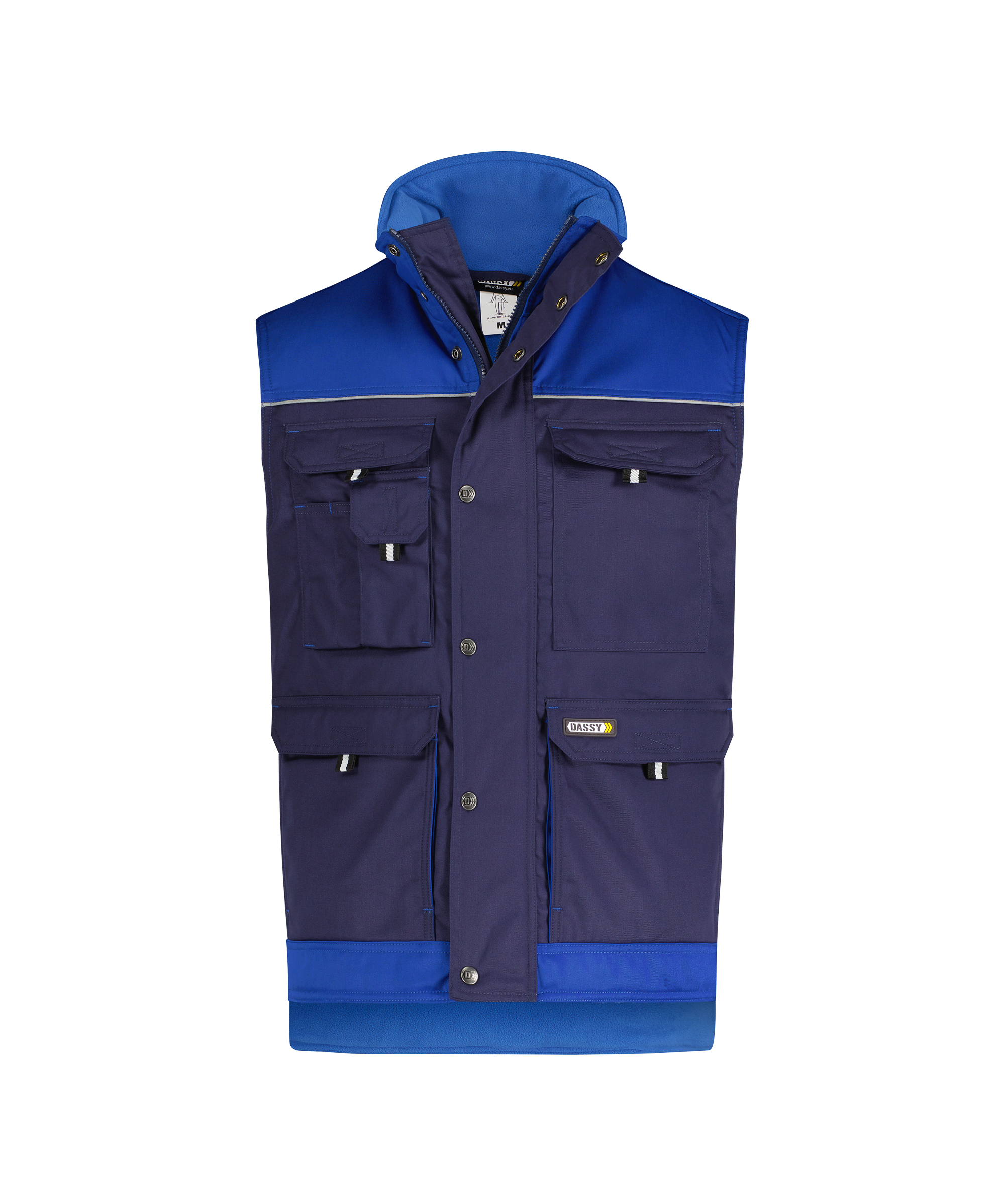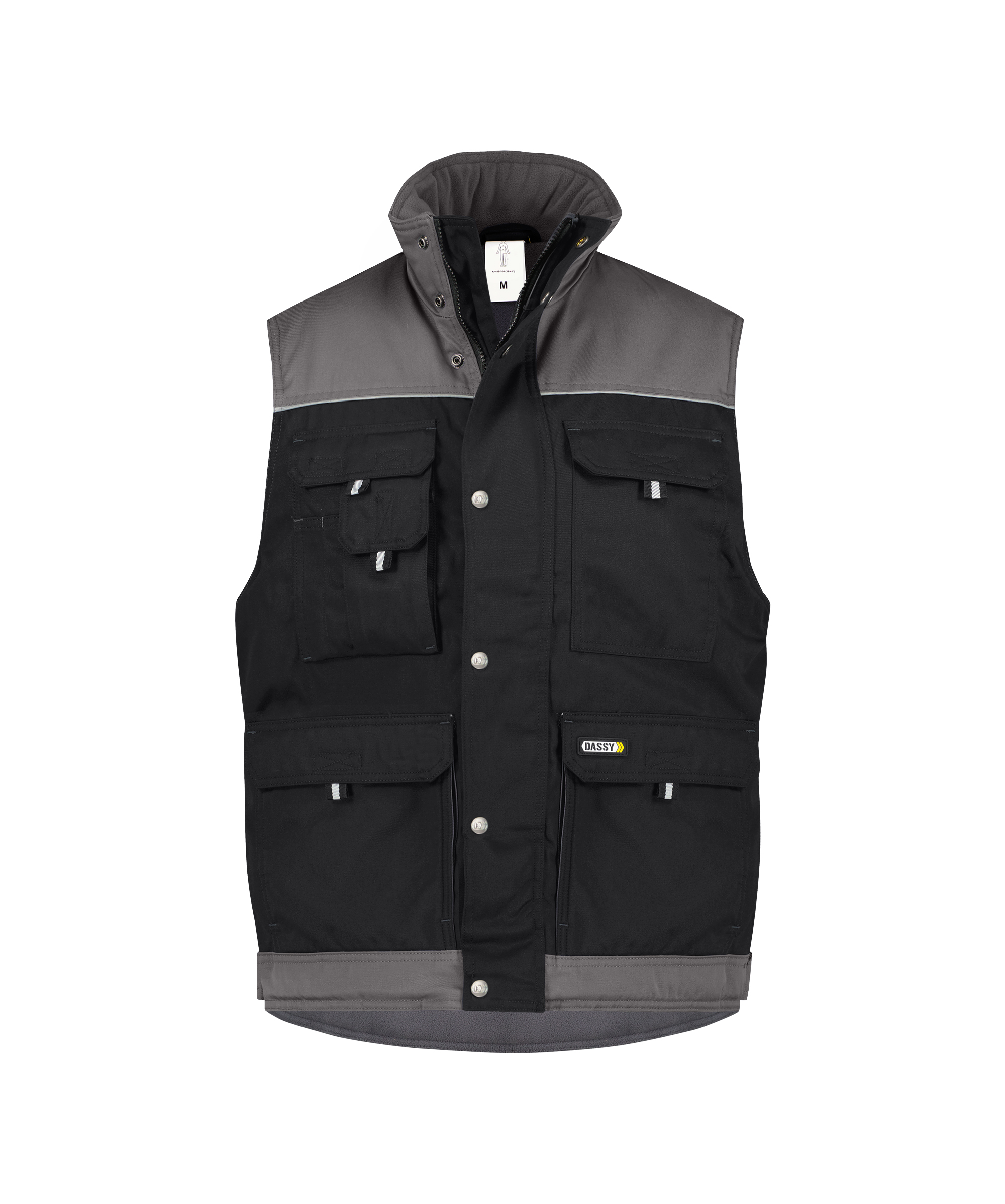 Deze tweekleurige winterbodywarmer uit de DASSY® Classic-collectie biedt je in 1 klap maar liefst 8 extra zakken. Voldoende opbergruimte verzekerd! De gewatteerde voering en de zachte fleece voeringstof houden je heerlijk warm.